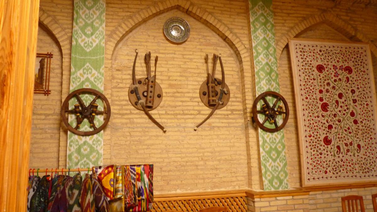 Кафе Зарафшон - расположено рядом с минаретом Ислам Ходжа в самом центре Ичан Калы. Кафе находится в старинной медресе 17 века и очень красиво оформлено в традиционном стиле. Меню кафе сосотит из блюд местной Хорезмской кухни.